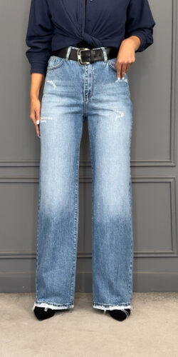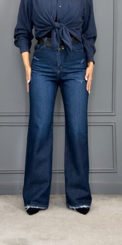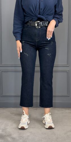 شلوار جین نیم بگ سورمه ای خام شور کد ۱۵۰۱